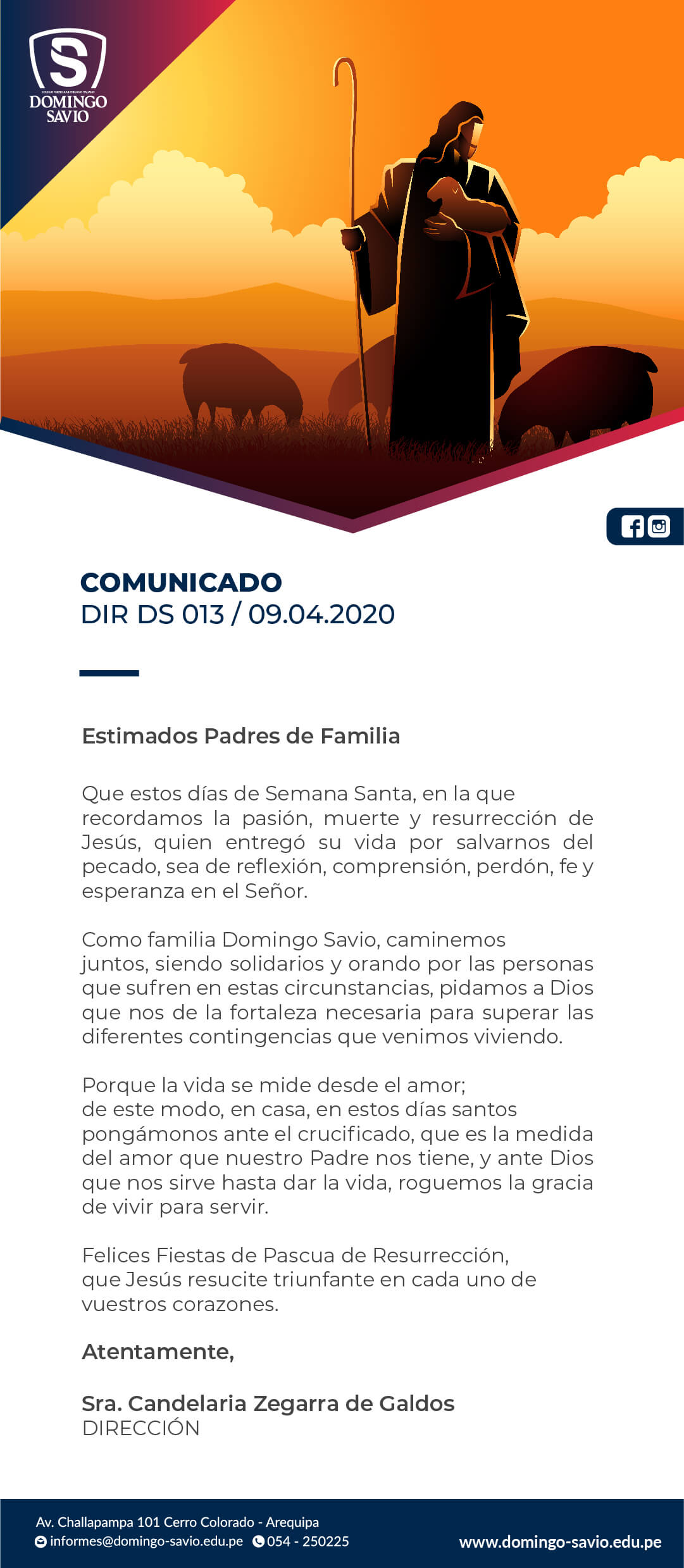 Colegio Domingo Savio - Arequipa | COMUNICADO DIR DS 013 / 09.04.2020